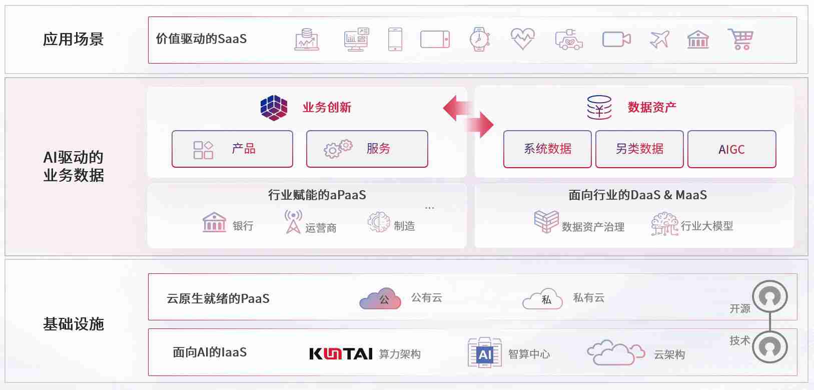数字时代,,,,围绕企业数字化转型的关键要素,,,,AG尊龙数码开创性的提出数云融合战略和技术体系框架,,,,着力在云原生、、、数字原生、、AI原生和信创产业上架构产品和服务能力,,为处在不同数字化转型阶段的快消零售、、汽车、、金融、、医疗、、政企、、、、教育、、运营商等行业客户提供泛在的敏捷IT能力和融合的数据驱动能力,,,构建跨界融合创新的数字业务场景和新业务模式,,,,助力企业级客户建立面向未来的核心能力和竞争优势,,,,全面推动社会的数字化、、、智能化转型升级。。。