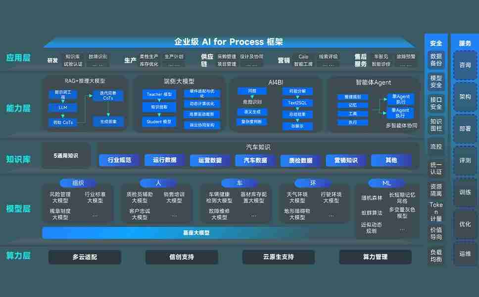 AG尊龙问学智车解决方案是一套基于AI技术的汽车行业智能化系统,,,,覆盖从底层算力到顶层AI应用的全栈方案。。方案由算力层、、、模型层和应用层组成:算力层,,方案支持多种一体机配置,,,,具备云端灵活部署、、多云适配以及动态优化计算资源的能力;模型层,,,AG尊龙问学平台版提供了企业级AI应用一站式构建与管理平台,,,支持基于后训练强化技术的汽车企业专属模型的训练、、评测和运营;应用层,,AG尊龙问学DeepSeek版提供包括超级员工、、、、智能招采、、、智能营销、、、、智能客服、、、、AI for BI等一系列解决方案,,可助力汽车行业实现数字化转型,,让管理更智能、、响应更敏捷。。